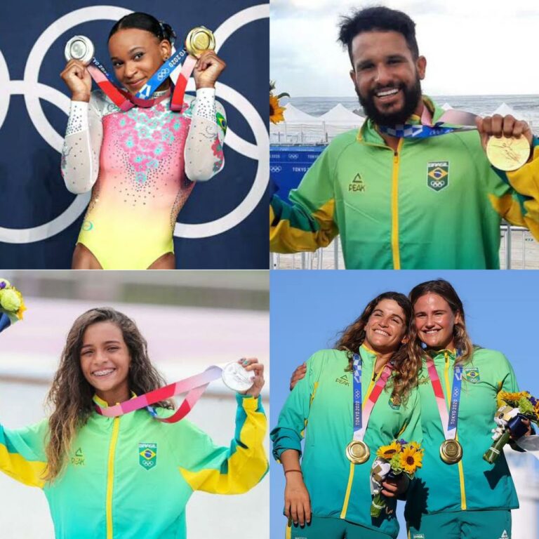 Nas Olimpíadas do Rio, o país conquistou, no total, sete ouros, seis pratas e seis bronzes, estabelecendo a melhor campanha da história. Em Tóquio, o Brasil tem, até o momento, quatro ouros, quatro pratas e oito bronzes. Além dos pódios já garantidos, o vôlei masculino vai disputar o bronze, e Isaquias Queiroz é um dos favoritos ao pódio na canoagem.