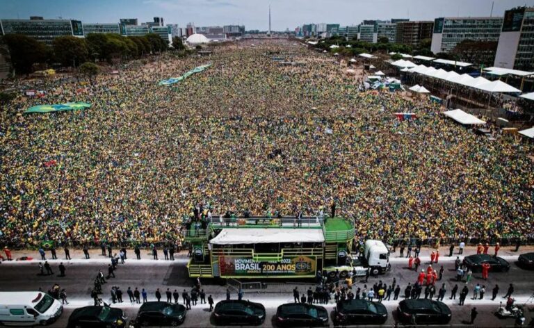 Bolsonaro, em tom de campanha eleitoral, discursou após o desfile em um trio elétrico. Ao lado da primeira-dama, Michelle Bolsonaro, do candidato a vice, Braga Netto, e de empresários aliados, Bolsonaro mencionou diretamente o dia da eleição, 2 de outubro. Pediu para seus apoiadores votarem e mudarem a opinião de quem tem preferências diferentes.