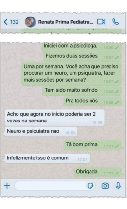 Ainda na conversa com a pediatra, Monique relatou que iniciou as consultas com uma psicóloga. Em depoimento prestado também na delegacia, a profissional havia dito que foi procurada por Monique pela recusa de Henry em ficar com ela e o padrasto no Majestic. “Iniciei com a psicóloga. Fizemos duas sessões, uma por semana. Você acha que preciso procurar um neuro, psiquiatra, fazer mais sessões por semana? Tem sido muito sofrido para todos nós”, escreveu.