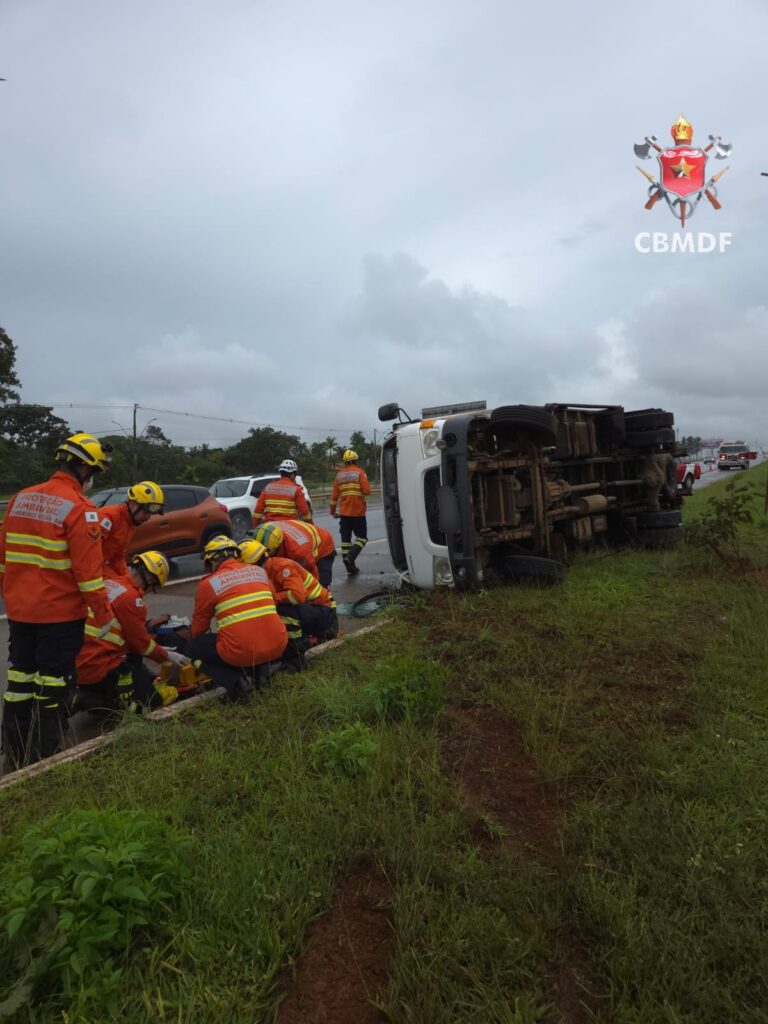 Um caminhão capotou na tarde desta terça-feira (20/1) na região do Núcleo Bandeirante. O acidente ocorreu na SMPW Q 07, Conjunto 01, e mobilizou três viaturas do Corpo de Bombeiros Militar do Distrito Federal (CBMDF).