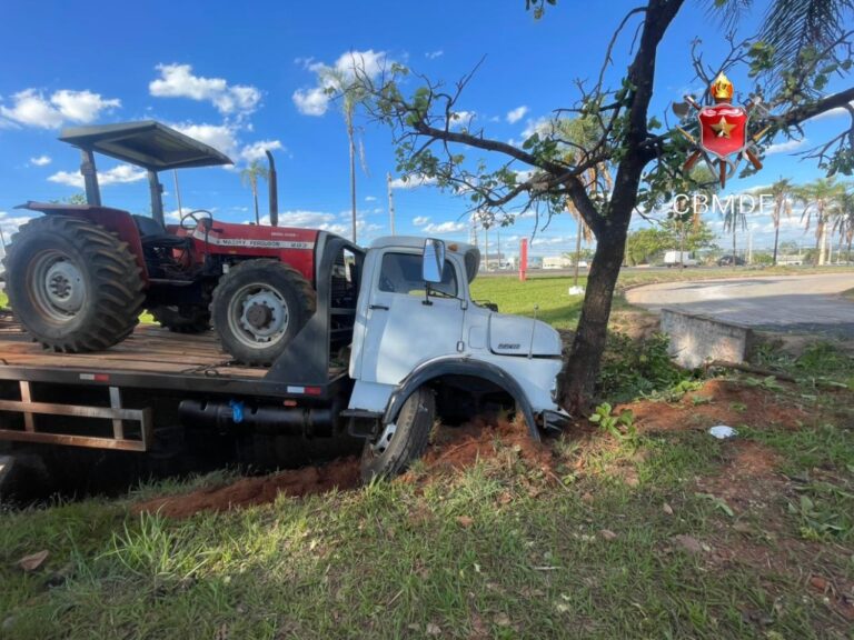Um caminhão colidiu contra uma árvore no fim da tarde desta quarta-feira (19/11) na Estrada Parque Núcleo Bandeirante (EPNB), próximo à “Placa da Mercedes”, no sentido Núcleo Bandeirante.