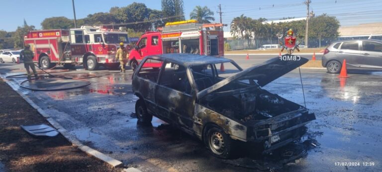 Segundo o Corpo de Bombeiros Militar do Distrito Federal (CBMDF), o veículo, um Fiat Uno, foi encontrado em chamas. O condutor, de 65 anos, estava fora do veículo. De imediato foi iniciado o combate com uso de linhas de mangueira empregando água e espuma.