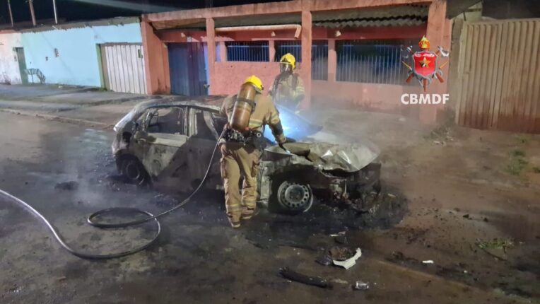 O Corpo de Bombeiros Militar do Distrito Federal (CBMDF) foi acionado à 1h47 e encontrou um Polo Track em chamas. Para conter o incêndio, os militares montaram rapidamente uma linha de mangueira e iniciaram o combate usando água.