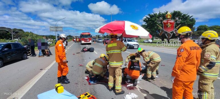 Segundo o Corpo de Bombeiros Militar do Distrito Federal (CBMDF), a colisão envolveu um caminhão Mercedes-Benz, conduzido por um homem de 39 anos, que não se feriu e uma motocicleta Honda CG 150, pilotada por um homem de 26 anos, que foi atendido e transportado em estado grave para o Hospital Regional de Santa Maria.