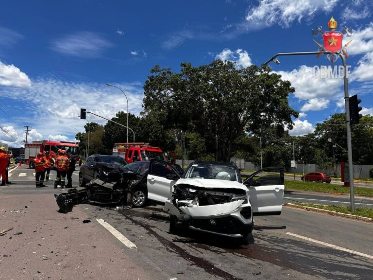 Um acidente envolvendo três veículos deixou cinco pessoas feridas na tarde desta sexta-feira (26/12), no Lago Sul. A colisão aconteceu na QI 15 e mobilizou equipes de resgate do Corpo de Bombeiros Militar do DF (CBMDF).
