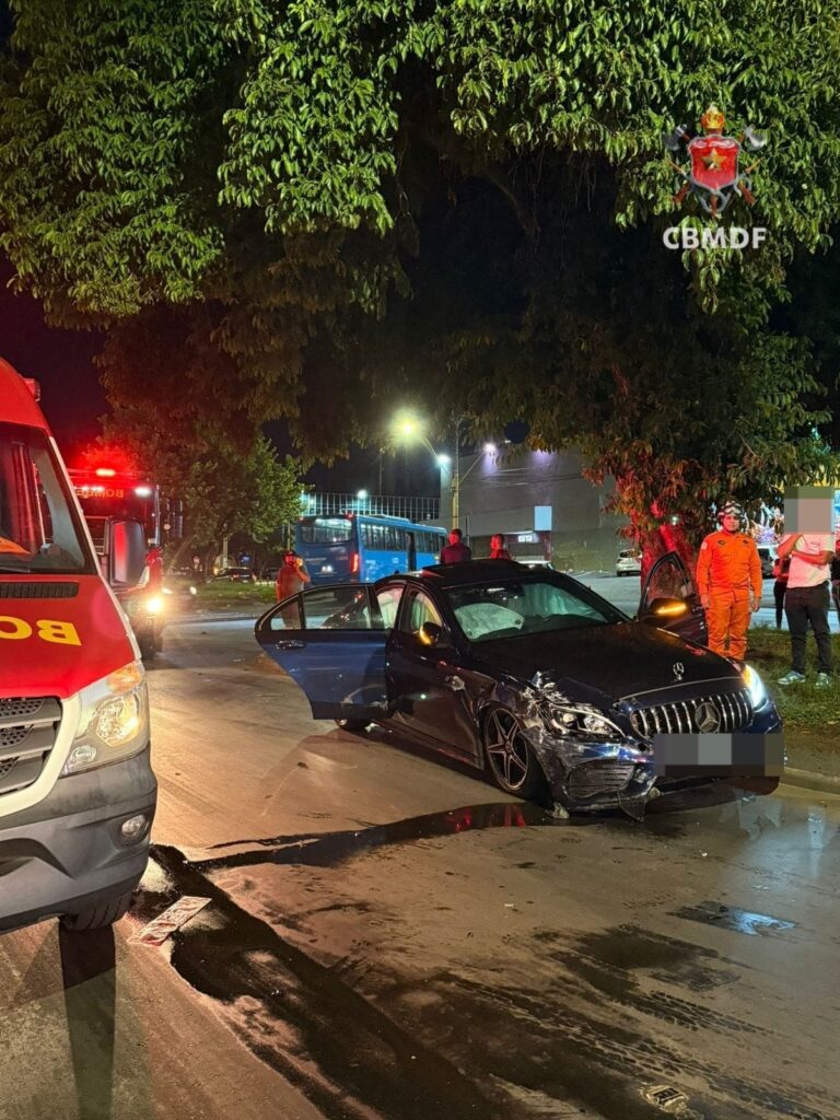 O atendimento foi realizado pelo Corpo de Bombeiros Militar do Distrito Federal (CBMDF), acionado às 19h40 e que mobilizou três viaturas de socorro para a ocorrência. No local, as equipes encontraram um Toyota, de cor cinza, e uma Mercedes-Benz, de cor azul, envolvidos no choque.