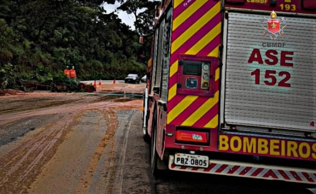 A atuação rápida do Corpo de Bombeiros Militar do Distrito Federal (CBMDF) evitou que a situação evoluísse para algo mais grave. As equipes foram acionadas por volta das 8h e, ao chegarem ao local, identificaram que parte do barranco às margens da rodovia havia cedido, lançando grande volume de terra sobre uma das faixas de rolamento.