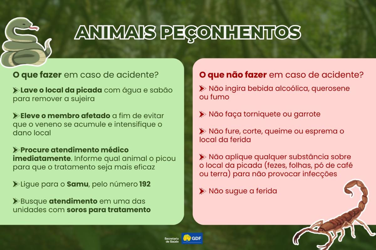 Na maior parte das situações, o tratamento é baseado em suporte clínico, com controle da dor e observação do quadro. Quando necessário, profissionais usam informações sobre o tipo de animal e os sintomas apresentados para definir a conduta mais adequada. A Secretaria de Saúde informa que as equipes têm acesso a bancos de dados nacionais e internacionais para orientar esse atendimento.