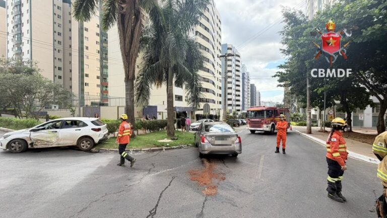 Um acidente de trânsito envolvendo dois carros de passeio mobilizou o Corpo de Bombeiros Militar do Distrito Federal (CBMDF) na manhã desta segunda-feira (27), em Águas Claras, na Avenida Pau Brasil, nº 04.