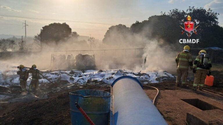 Equipes do Corpo de Bombeiros Militar do Distrito Federal (CBMDF) foram acionadas e deslocaram quatro viaturas para conter o fogo. Ao chegarem ao local, os socorristas iniciaram o combate com linhas de mangueiras e uso de espuma química, técnica empregada para controlar incêndios em materiais altamente inflamáveis.