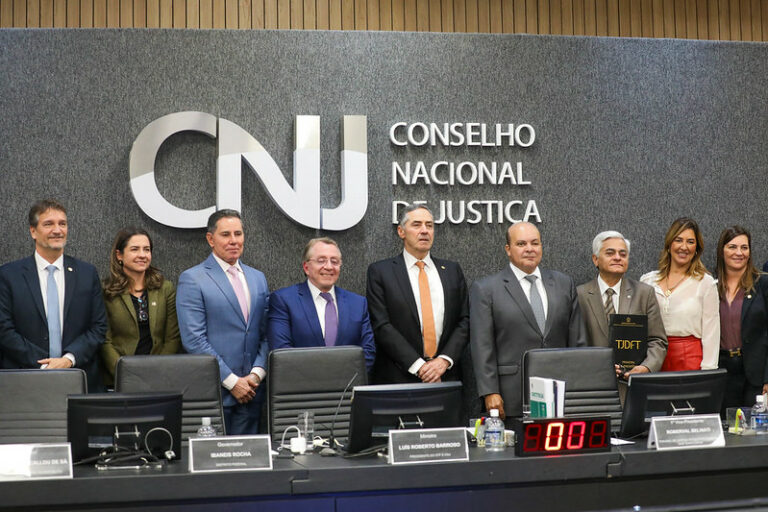 A assinatura da parceria ocorreu, nesta terça-feira (11), durante a 7ª Sessão Ordinária de 2024 no Plenário do CNJ, com a presença do governador do DF, Ibaneis Rocha, do presidente do Supremo Tribunal Federal (STF), Luís Roberto Barroso, da procuradora-geral do DF, Ludmila Galvão, do vice-presidente do TCDF, André Clemente, e do 1º vice-presidente do TJDFT, Roberval Belinati.