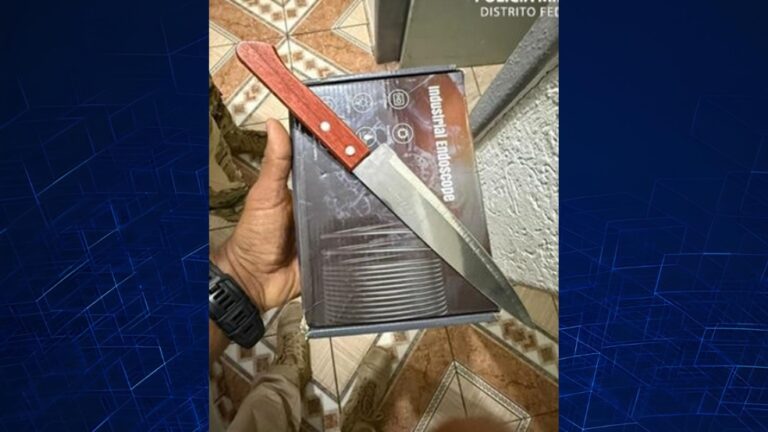 Segundo a Polícia Militar do Distrito Federal (PMDF), o homem chegou a golpear o portão do imóvel com a arma branca enquanto fazia ameaças contra a família.