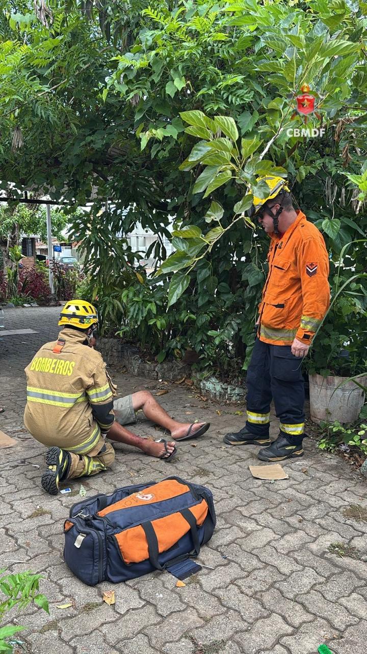 O Corpo de Bombeiros Militar do Distrito Federal (CBMDF) foi acionado, e no local, os socorristas encontraram a vítima caída em via pública, inconsciente, com sangramento intenso na cabeça provocado por agressão com objeto contundente.