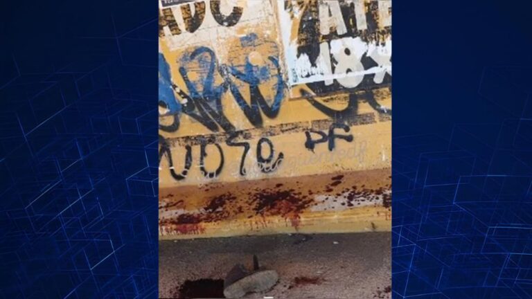 Imagens registradas por passageiros que passaram pela área mostram a parada de ônibus com grande quantidade de sangue e um par de calçados abandonado no local.