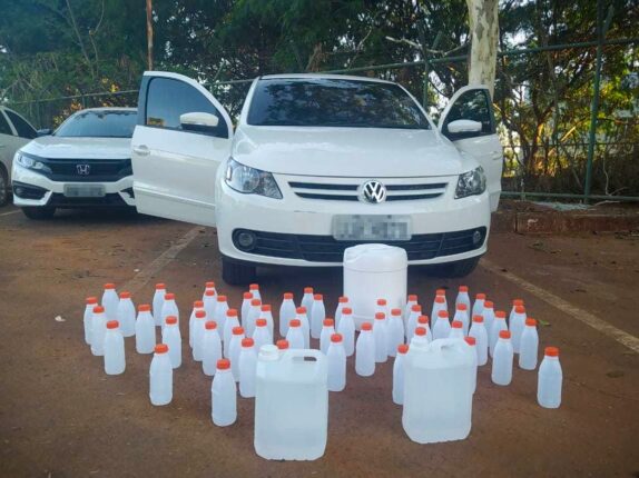 Na ação, foram apreendidos um galão de 20 litros e dois de cinco litros da substância, além de 60 embalagens prontas para preenchimento e venda para o consumo de terceiros. Foi ainda apreendido o veículo utilizado pelo autuado e R$ 450, em espécie.