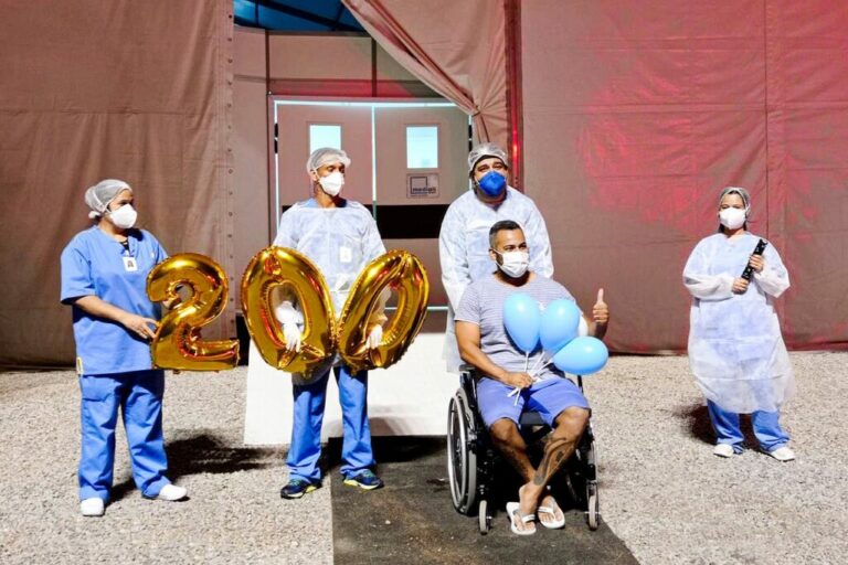 Com balões e alegria, o agora ex-paciente Edson Marques, 40 anos, celebrou a vitória contra a covid-19 ao receber alta do Hospital de Campanha do Gama. Edson é morador de Samambaia e foi o ducentésimo paciente a despedir-se da equipe multiprofissional da unidade.