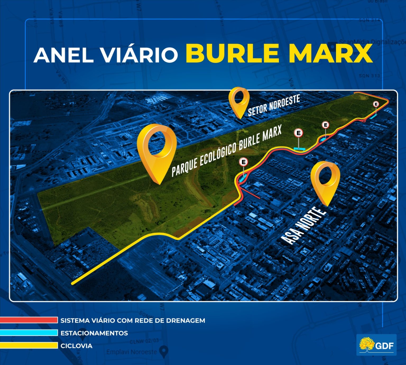 O Governo do Distrito Federal (GDF) entregou, nesta quarta-feira (29), o anel viário do Parque Ecológico Burle Marx, que conecta o trânsito entre Noroeste e Asa Norte, e a nova rede de distribuição subterrânea. Além disso, o governador Ibaneis Rocha autorizou o processo licitatório para a construção do segundo viaduto do Noroeste.