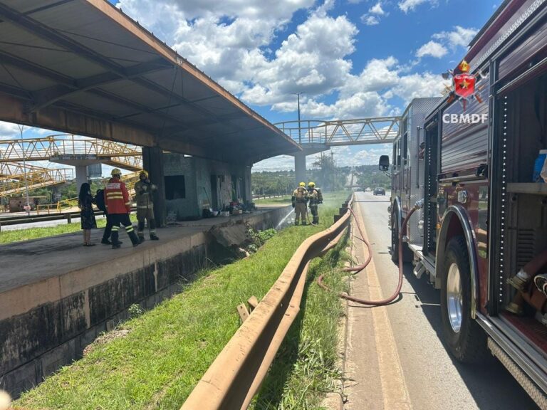 De acordo com o Corpo de Bombeiros Militar do Distrito Federal (CBMDF), o chamado foi registrado às 12h28 para a área da SGCVS, AE – Banca 10, onde funciona a estrutura desativada do VLT. No local, as equipes encontraram chamas e muita fumaça saindo da lateral da estação, causada pela queima de entulhos acumulados na área.