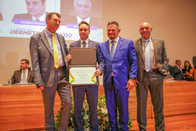 A entrega da honraria, proposta pelos deputados distritais Hermeto e Iolando, ocorreu na noite desta quarta-feira (3), no auditório da CLDF, que esteve lotado.