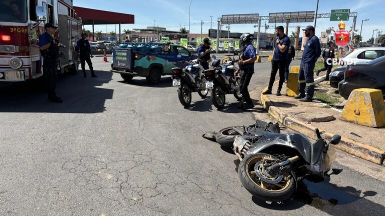 O Corpo de Bombeiros Militar do Distrito Federal (CBMDF) foi acionado e enviou duas viaturas para o local. Ao chegarem, os socorristas encontraram uma colisão envolvendo uma motocicleta Honda CBR 600F, de cor preta, e um Fiat Strada Enduran, branco.
