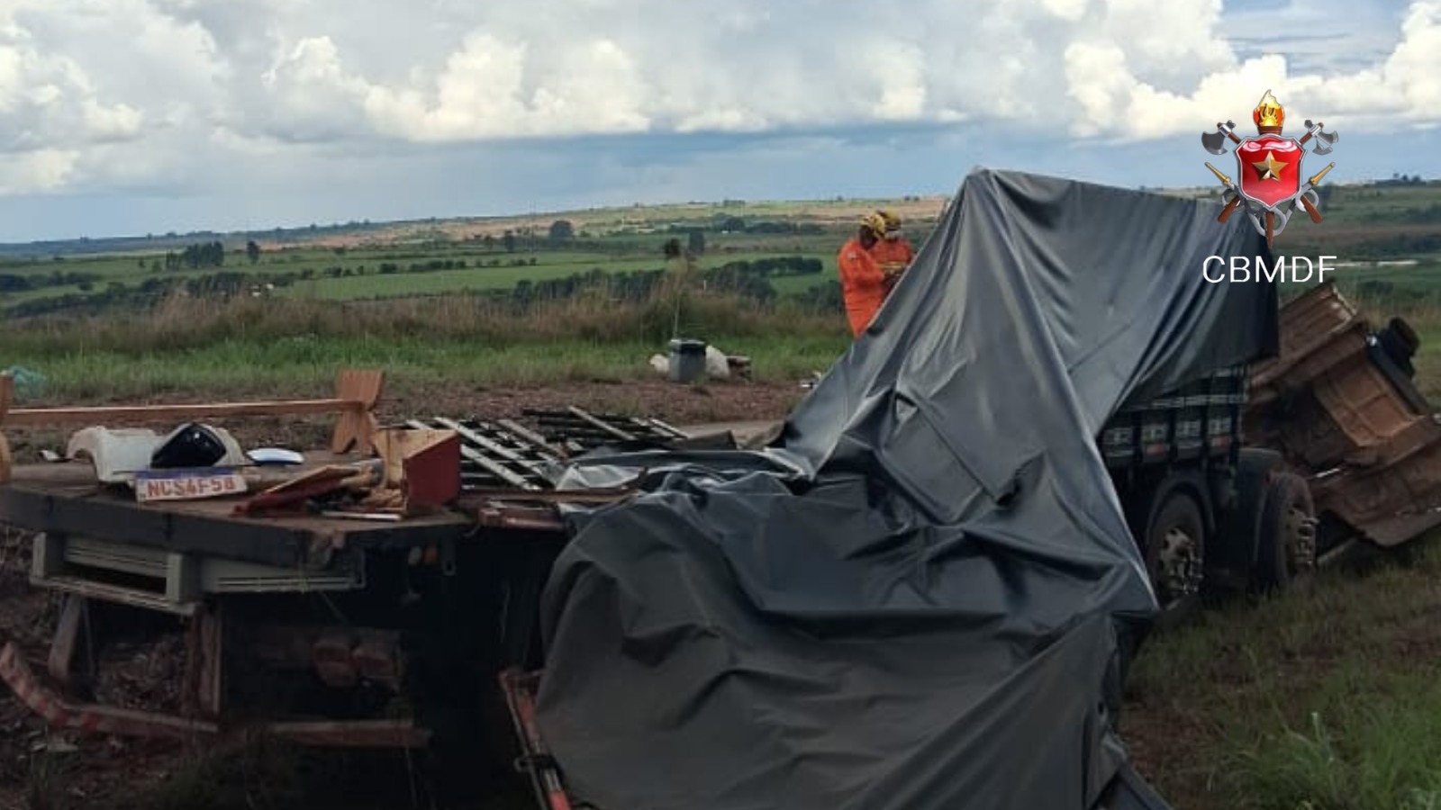 De acordo com o Corpo de Bombeiros Militar do Distrito Federal (CBMDF), o acionamento ocorreu às 14h54, e três viaturas foram enviadas ao local. A carreta, um modelo Iveco Bitruck, teria perdido o controle após uma manobra de outro veículo, batido em um barranco e seguido desgovernada até parar no canteiro central da rodovia.