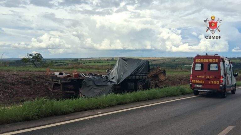 De acordo com o Corpo de Bombeiros Militar do Distrito Federal (CBMDF), o acionamento ocorreu às 14h54, e três viaturas foram enviadas ao local. A carreta, um modelo Iveco Bitruck, teria perdido o controle após uma manobra de outro veículo, batido em um barranco e seguido desgovernada até parar no canteiro central da rodovia.
