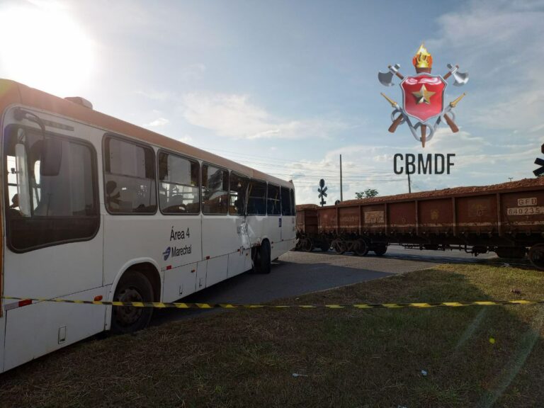 Depois do acidente que resultou na morte de uma passageira e mais cinco feridos, o motorista foi levado para o hospital em estado de choque. Imagens do momento mostram que ele cruzava a linha férrea quando o trem de carga atingiu o ônibus na lateral. A passageira morta foi arremessada pela janela e atropelada pelo trem.