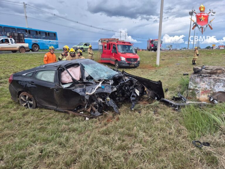 O Corpo de Bombeiros Militar do Distrito Federal foi acionado e enviou três viaturas para atender a ocorrência. No local, as equipes encontraram um Honda Civic preto que havia colidido contra uma caixa de águas pluviais.