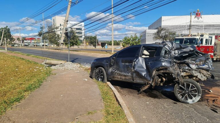 Com a colisão o veículo Toyota perdeu o controle e se chocou contra dois postes de transmissão de energia.