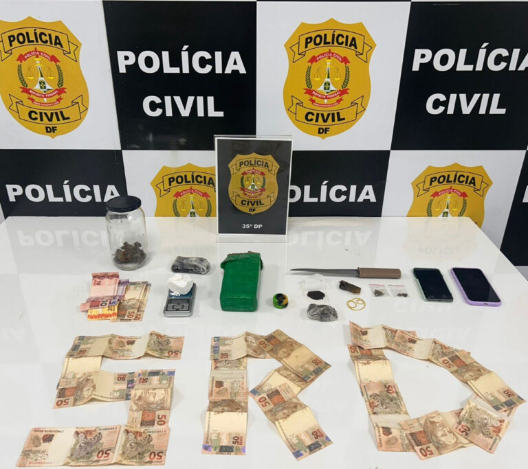 As diligências prosseguiram até a casa do jovem, onde os policiais encontraram porções de haxixe, skunk, cocaína e maconha, além de dinheiro em espécie e uma balança de precisão, reforçando a suspeita de comércio habitual de drogas. A PCDF apontou que o adulto era quem intermediava as vendas e orientava o adolescente sobre as entregas, caracterizando o crime de corrupção de menores associado ao tráfico.