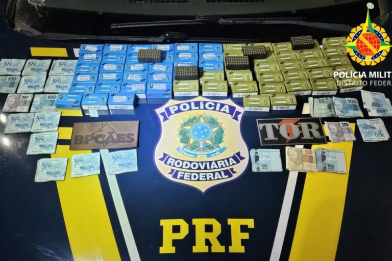 Uma ação conjunta envolvendo a Polícia Militar do Distrito Federal e a Polícia Rodoviária Federal (PRF) resultou na prisão de um homem e na apreensão de 3 mil munições e R$ 22 mil. O caso aconteceu na noite de ontem (10/4), na BR-060.