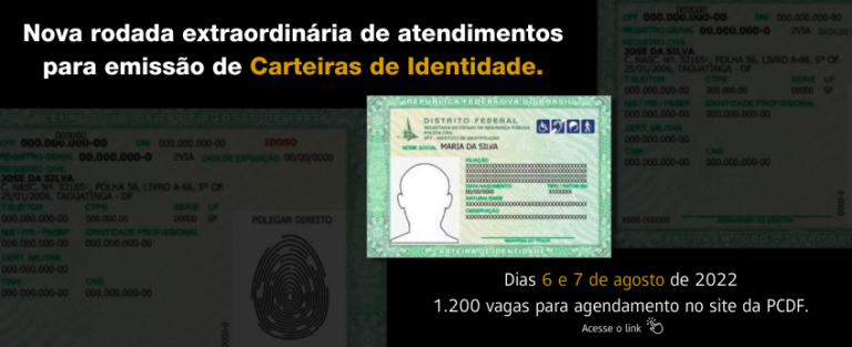 A Polícia Civil do Distrito Federal (PCDF), por meio do Instituto de Identificação, vai fazer em torno de 1.200 atendimentos nestes sábado (06/8) e domingo (07/8) para emissão de carteira de identidade. O serviço será aberto à população de todo o Distrito Federal.