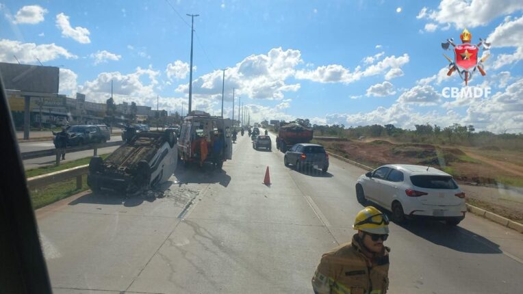 No local, o Corpo de Bombeiros Militar do Distrito Federal (CBMDF) encontrou um Ford Ka GL prata fora da pista. Após garantir a segurança da área, as quatro ocupantes do veículo foram avaliadas e transportadas conscientes para atendimento hospitalar com ferimentos leves.