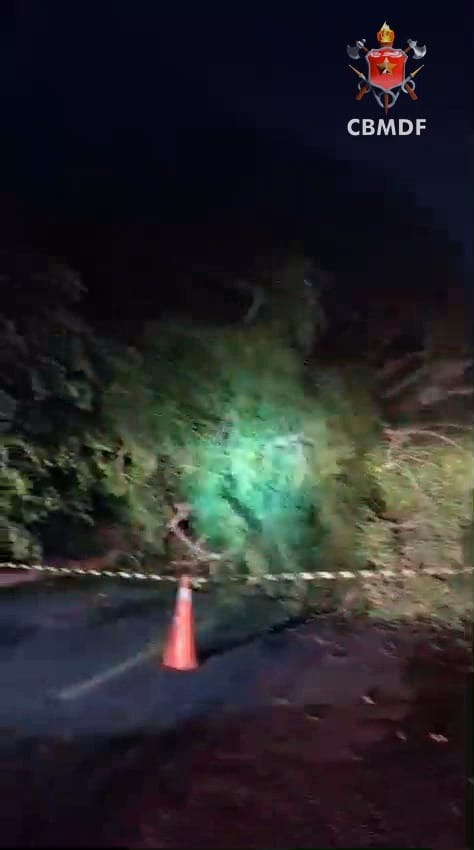O atendimento foi realizado pelo Corpo de Bombeiros Militar do Distrito Federal (CBMDF), que foi acionado por volta das 4h47 e deslocou duas viaturas para o local. Ao chegarem ao condomínio, os militares encontraram a árvore tombada sobre a fiação, com o fornecimento de energia já interrompido. A situação exigiu atuação cuidadosa devido ao risco elétrico.