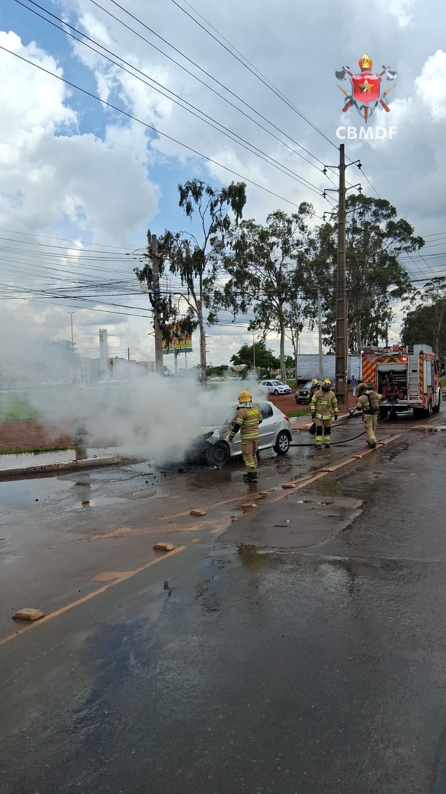 Minutos depois, às 14h54, os militares foram chamados para um terceiro incidente, desta vez na Avenida Pau Brasil, também em Águas Claras. A cena era semelhante: um veículo de passeio em chamas. O incêndio foi rapidamente controlado.