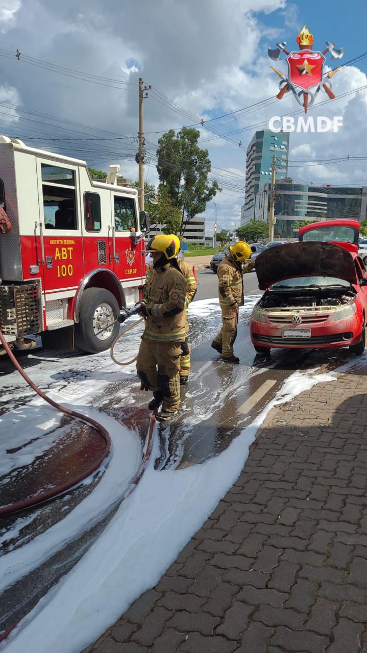 Cerca de uma hora depois, às 14h47, outra equipe foi acionada para um incêndio na Avenida Jacarandá, em Águas Claras. No local, um carro vermelho era consumido pelas chamas. Novamente, os bombeiros realizaram o isolamento da área e extinguiram o fogo.