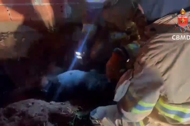 De acordo com o Corpo de Bombeiros Militar do Distrito Federal (CBMDF), a ocorrência foi registrada às 18h20, com o emprego de uma viatura. Ao chegarem ao endereço informado, os militares localizaram o animal preso no interior de um buraco profundo e estreito, o que dificultava qualquer tentativa de saída por meios próprios.