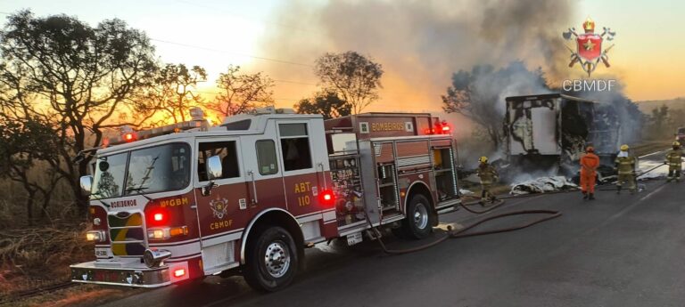 De acordo com o Corpo de Bombeiros Militar do Distrito Federal (CBMDF), chegando ao local, as equipes de socorro deparam-se com uma carreta de algodão em chamas. De imediato foi iniciado o combate, com uso de linhas de mangueira empregando água e espuma.