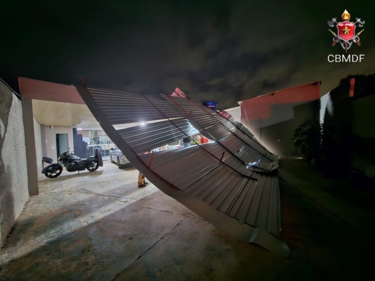 O Corpo de Bombeiros Militar do Distrito Federal (CBMDF) foi acionado às 22h24 e enviou uma viatura ao local. Ao chegarem, os militares encontraram parte da cobertura caída e realizaram a retirada e o armazenamento seguro das telhas e estruturas para evitar novos incidentes.
