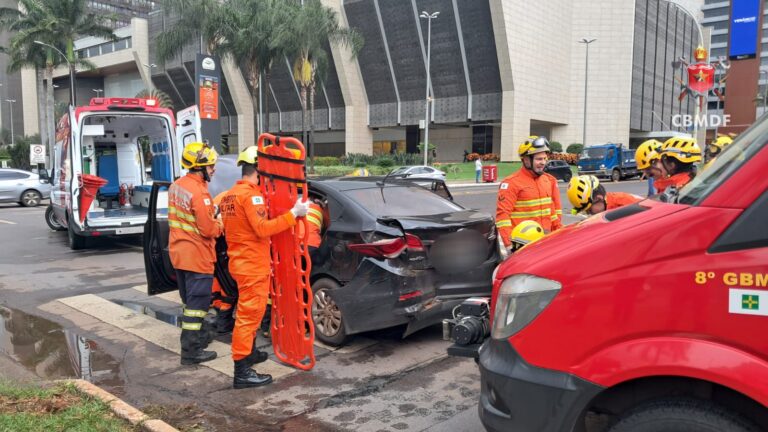 Uma batida envolvendo dois veículos mobilizou o Corpo de Bombeiros Militar do Distrito Federal (CBMDF) na tarde desta terça-feira (3). O acidente aconteceu na W3 Sul, na altura do Shopping Pátio Brasil.