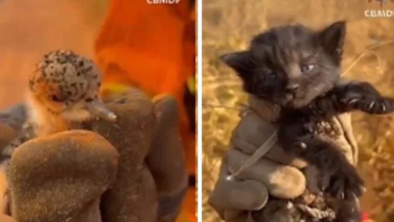 Durante o trabalho de rescaldo, os bombeiros ouviram miados vindos do meio da mata. Para localizar o animal, um dos militares utilizou o celular para reproduzir sons de gato, o que fez o filhote responder e, em seguida, ser encontrado e resgatado. Sensibilizados com a situação, funcionários de uma fábrica de piscinas próxima ao local do incêndio decidiram acolher o animal.