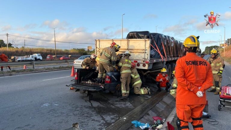 O Corpo de Bombeiros Militar do Distrito Federal (CBMDF) mobilizou cinco viaturas de resgate para a operação. Ao chegarem ao local, as equipes encontraram os dois veículos colididos com grande impacto.