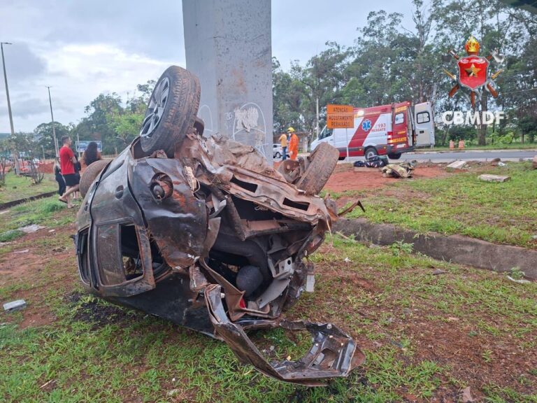 O Corpo de Bombeiros Militar do Distrito Federal (CBMDF) informou que foi acionado às 5h45 e enviou três viaturas de socorro para o atendimento. No local, as equipes encontraram um Renault Clio preto capotado e apoiado sobre o teto, além da vítima caída fora do veículo, em estado grave e em parada cardiorrespiratória.
