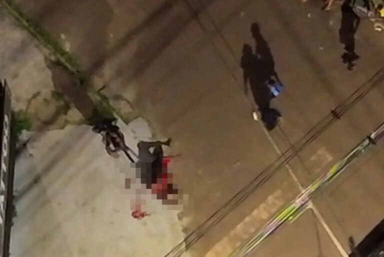 Imagens registradas por pessoas que estavam no local mostram o suspeito já ferido sendo agredido por um grupo, enquanto outros moradores acompanhavam a cena.