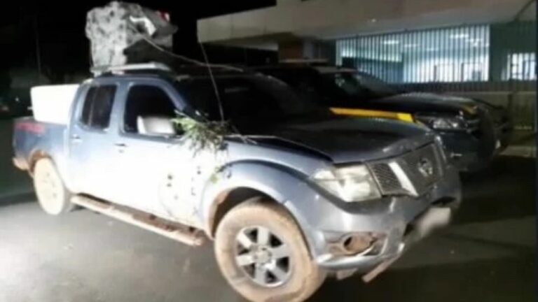 O motorista chegou a abandonar o veículo, uma Nissan Frontier azul, no meio do caminho, mas acabou detido pela PRF.