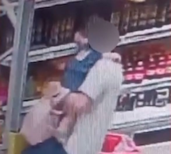 Imagens de segurança mostram o homem agachado, com a criança no colo, enquanto pegava os produtos. Em outro momento, ele aparece próximo a um caixa eletrônico antes de sair do local.