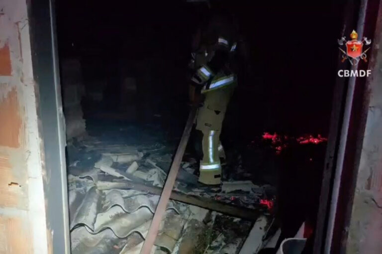 O Corpo de Bombeiros Militar do Distrito Federal (CBMDF) foi acionado por volta das 19h30 e deslocou duas viaturas para o endereço. Ao chegar, as equipes encontraram a pequena residência, de três cômodos, com fogo se projetando pelo telhado e grande quantidade de fumaça saindo pelas janelas.