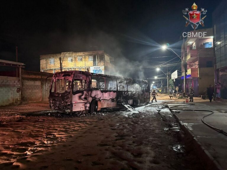 Câmeras de segurança registraram o momento em que um grupo composto por 15 homens interceptou um ônibus, obrigando todos os passageiros a descerem, e em seguida atearam fogo ao veículo, no setor de habitações Sol Nascente. O caso ocorreu na noite de sábado (30/3).