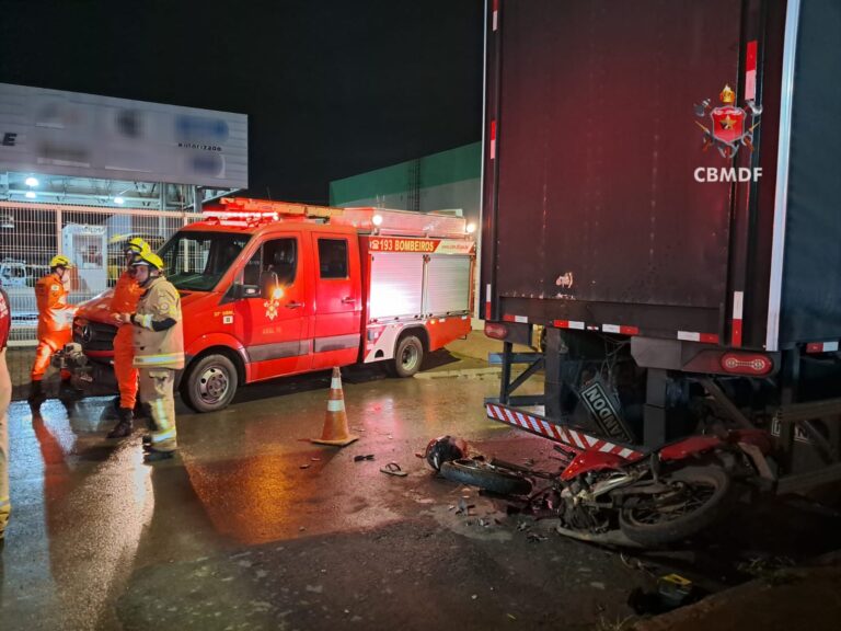 Um motociclista morreu após colidir com uma carreta Scania na tarde deste domingo (12/10), na Área de Desenvolvimento Econômico (ADE) de Águas Claras, em frente à Taguamotors. O impacto foi violento e mobilizou equipes de resgate e atendimento médico de urgência.