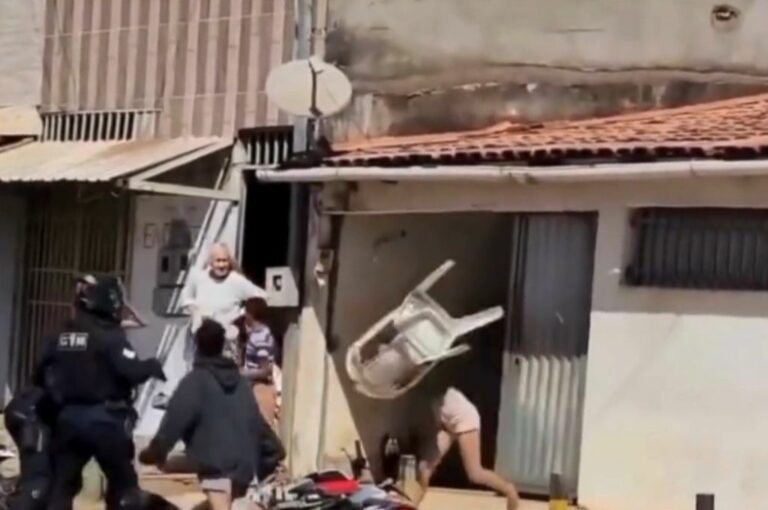 Em alta velocidade, o homem não conseguiu fazer a curva e caiu. Os familiares do detido tentaram impedir a ação policial e começaram a xingar e arremessar cadeiras, garrafas e pedras contra os agentes.